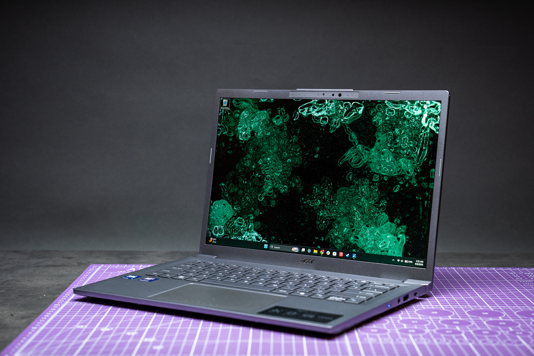 The chip is most of what you’re paying for with the Acer, along with the port selection. While all three of these Windows laptops have a greater quantity and variety of ports than the MacBook Neo, only the Aspire 14 has Thunderbolt 4 and HDMI 2.1. Most of the rest of the laptop is just okay. We’re still in subpar speaker territory. The keyboard isn’t as good as the Lenovo’s, but it’s got enough key travel to feel fine. The trackpad is also passable compared to the Asus and Lenovo, but it still sounds plasticky when you click. And the laptop’s deck flexes as you push down on or around the trackpad.