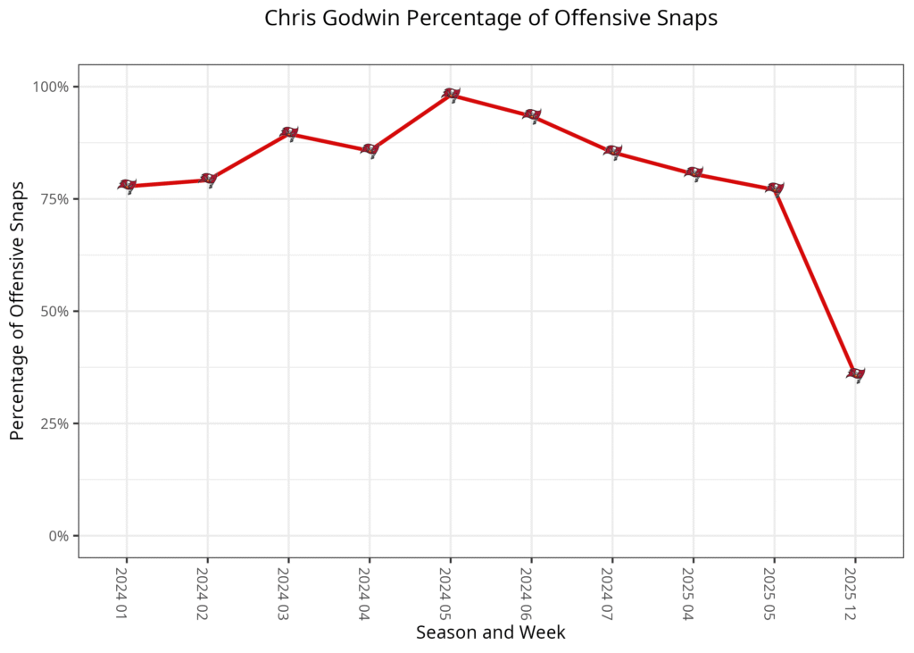 The Buccaneers still expect Mike Evans back in a few weeks. Once he returns, Evans should reclaim the X role, Egbuka will shift to Z and Godwin should remain in the slot for the rest of the season. Tampa Bay has the second-worst remaining schedule for wide receivers, and despite the name value in this group, there’s a real chance none of them profiles as a reliable fantasy starter down the stretch — especially if Baker Mayfield misses time.