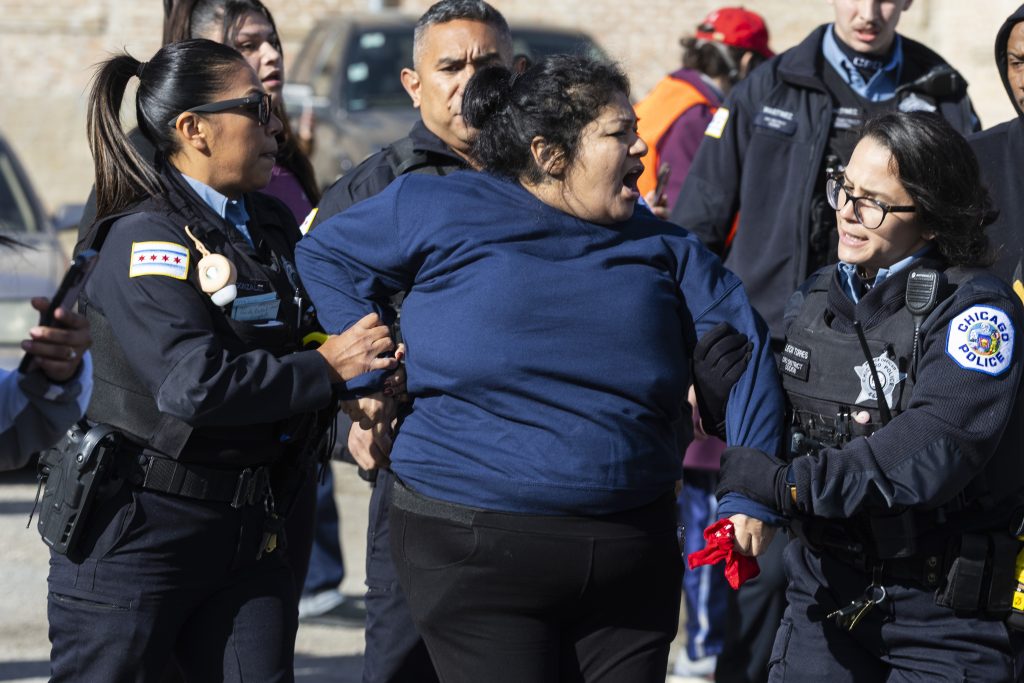 Community leaders said agents detained multiple people — including one teenager — during a standoff with neighbors who showed up to protest the agents’ presence in the neighborhood. The crowd gathered outside Little Village Plaza near 26th Street and Sacramento Avenue, which is home to popular businesses and shopping centers like the Discount Mall.