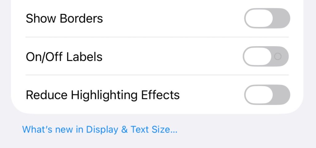 In the Accessibility menu in Settings, Apple has added. new toggle under Display & Text Size: “Reduce Highlighting Effects.” This should reduce some of the effects around the edges of buttons and sliders.