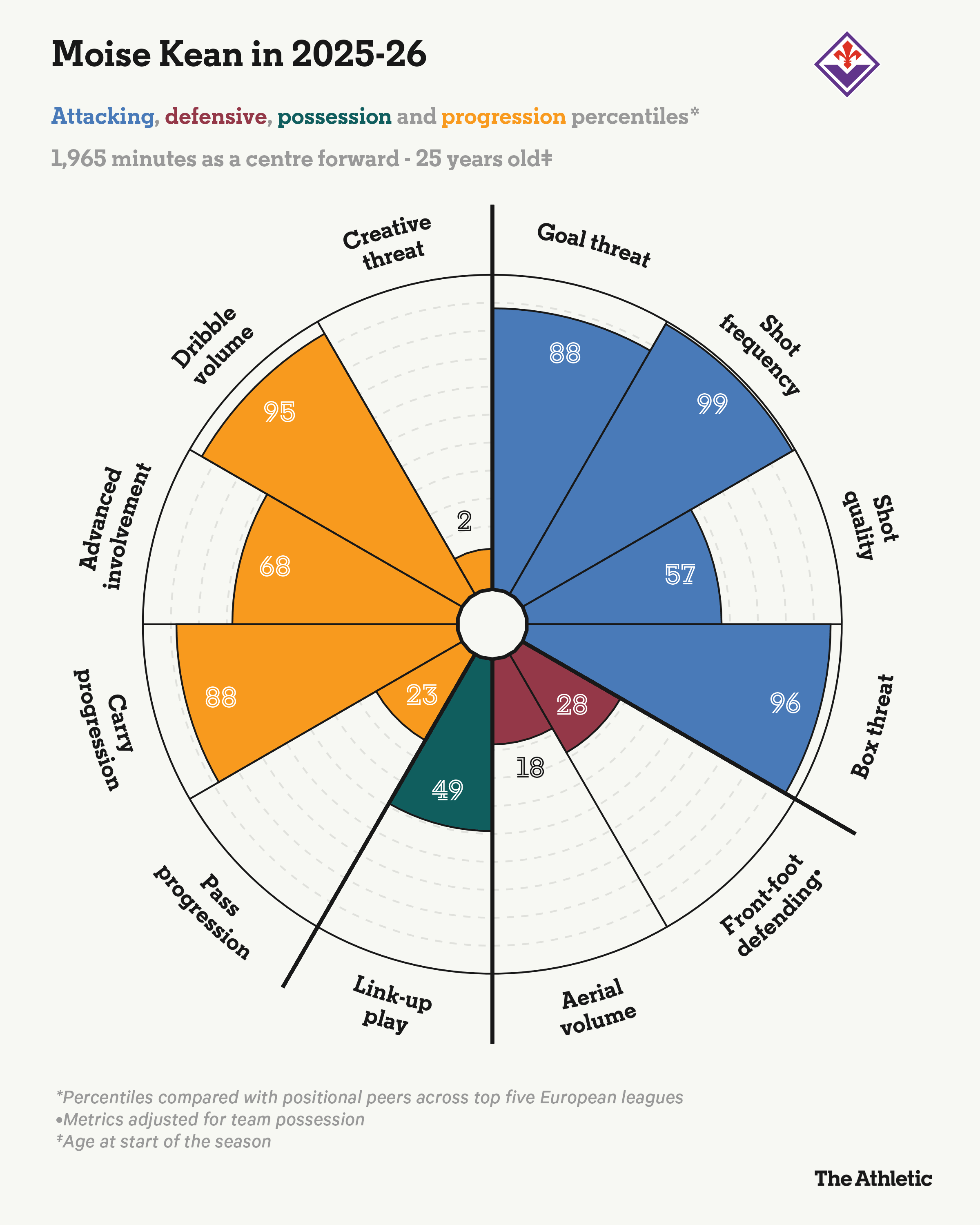 Kean has now scored in each of their last six games, something that no Italian has managed since Salvatore Schillaci in 1990. Issues up front plagued their last two failed World Cup qualification bids, but the Fiorentina forward’s clinical edge nearly fired them to the tournament in the U.S., Canada and Mexico this summer.