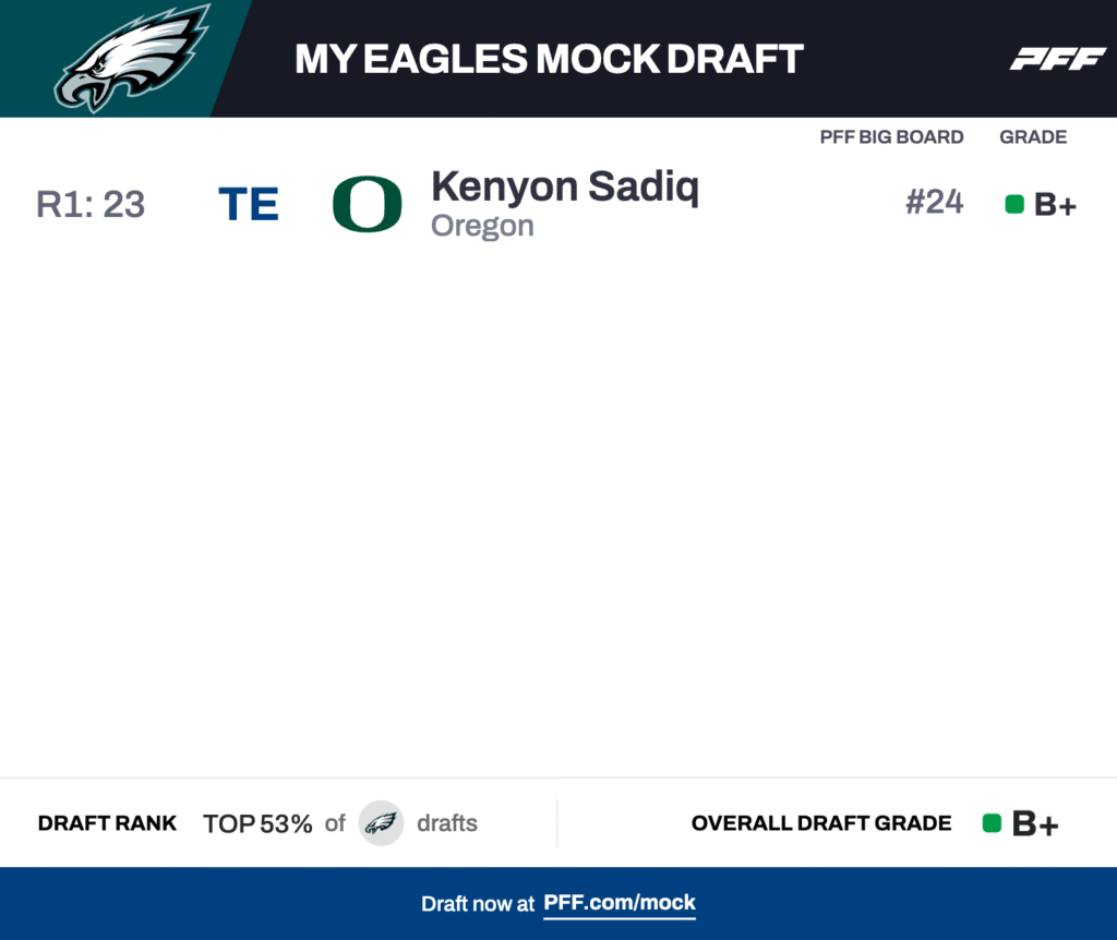 23. Philadelphia Eagles: TE Kenyon Sadiq, Oregon