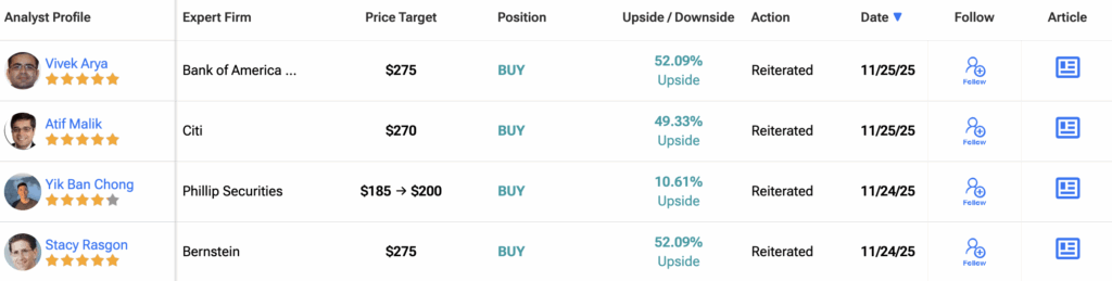 Turning to Wall Street, analysts have a Strong Buy consensus rating on NVDA stock based on 39 Buys, one Hold, and one Sell assigned in the past three months. Further, the average 12-month NVDA price target of $257.72 per share implies 42.54% upside potential.