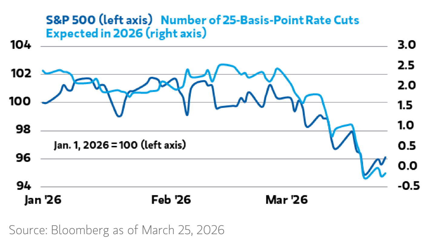 “With markets now forecasting nonzero prospects of actual rate hikes this year, even an end to Mideast hostilities might not be enough to catalyze S&P 500 recovery if high oil prices, and thus inflation threats, are persistent and lengthy enough to keep the Fed on the sideline through year-end,” Shalett says in her most recent note.