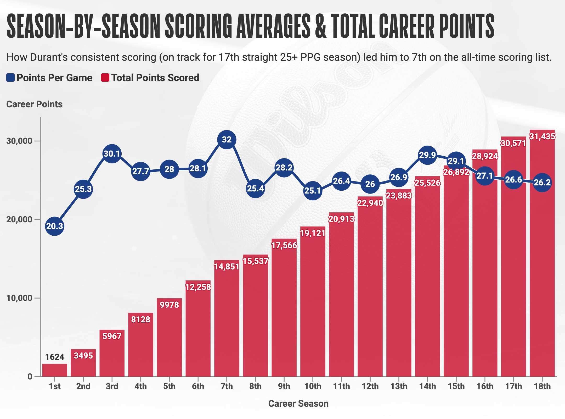 Kevin Durant passes Wilt Chamberlain on career scoring list