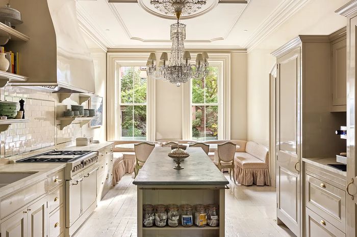 The house is now for sale for $7.995 million — more than double the $3.5 million that the two paid in 2021 when they were just newlyweds who had met on Raya and eloped to Vegas. That price may take into account the neighborhood’s hot streak or the cash they poured in to the Billy Cotton renovation she name-checked. Before their arrival, the place had been with one owner for decades and had bad wall-to-wall carpet, cheap beige tiles in the kitchen, and old cabinets, according to the 2020 listing. Cue Cotton. The designer put in custom cabinetry, new moldings, and lots of fussy wallpaper from Zuber. There’s print, print, and more print. A bathroom features custom faucets modeled to look like little swans. Harbour called the designer “budget un-conscious” in the AD tour.