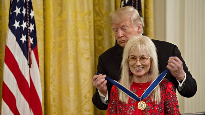 U.S. President Donald Trump presents Miriam Adelson, philanthropist and wife of billionaire Sheldon Adelson, with the Presidential Medal of Freedom during a ceremony in the East Room of the White House. (Photographer: Andrew Harrer/Bloomberg via Getty Images)