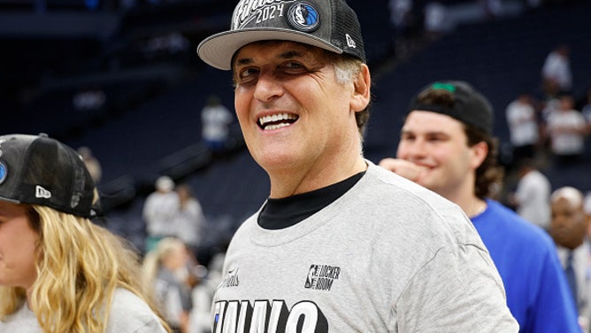 Mark Cuban celebrates after a 124-103 victory against the Minnesota Timberwolves in Game Five of the Western Conference Finals at Target Center on May 30, 2024, in Minneapolis, Minnesota. (Photo by David Berding/Getty Images)