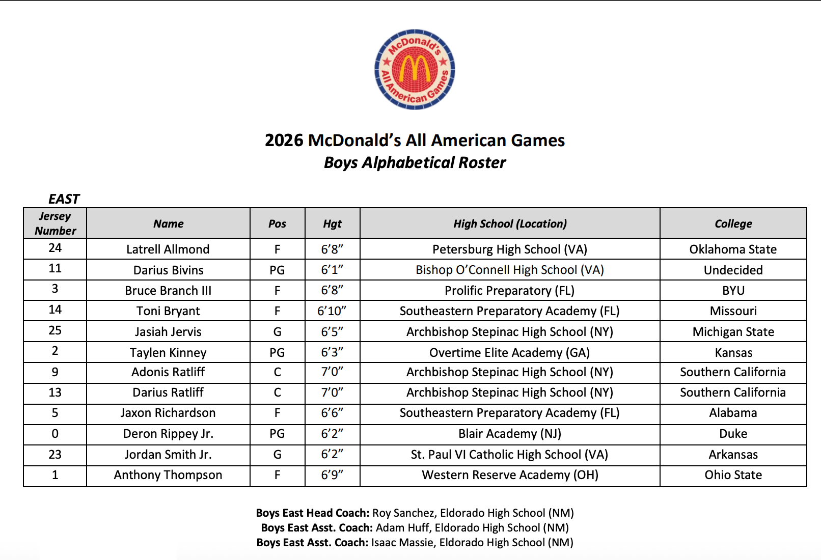 Here’s the full roster for the 2026 boys McDonald’s All-American Game.