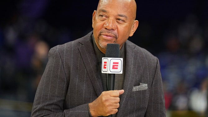 PHILADELPHIA, PENNSYLVANIA – JANUARY 15: Michael Wilbon of ESPN looks on prior to the game between the New York Knicks and Philadelphia 76ers at the Wells Fargo Center on January 15, 2025 in Philadelphia, Pennsylvania. The Knicks defeated the 76ers 125-119 in overtime. (Photo by Mitchell Leff/Getty Images)