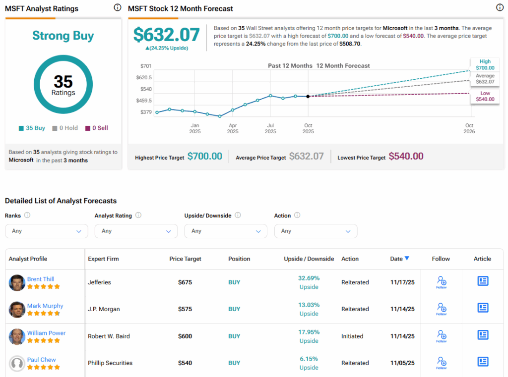 Turning to Wall Street, the analysts’ consensus rating for Microsoft is Strong Buy, based on 35 Buy ratings over the past three months. With that comes an average MSFT stock price target of $632.07, representing a potential 24.25% upside for the shares.