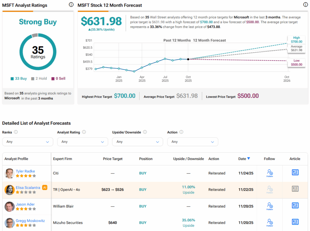 Turning to Wall Street, the analysts’ consensus rating for Microsoft is Strong Buy, based on 33 Buy and two Hold ratings over the past three months. With that comes an average MSFT stock price target of $631.98, representing a potential 33.36% upside for the shares.