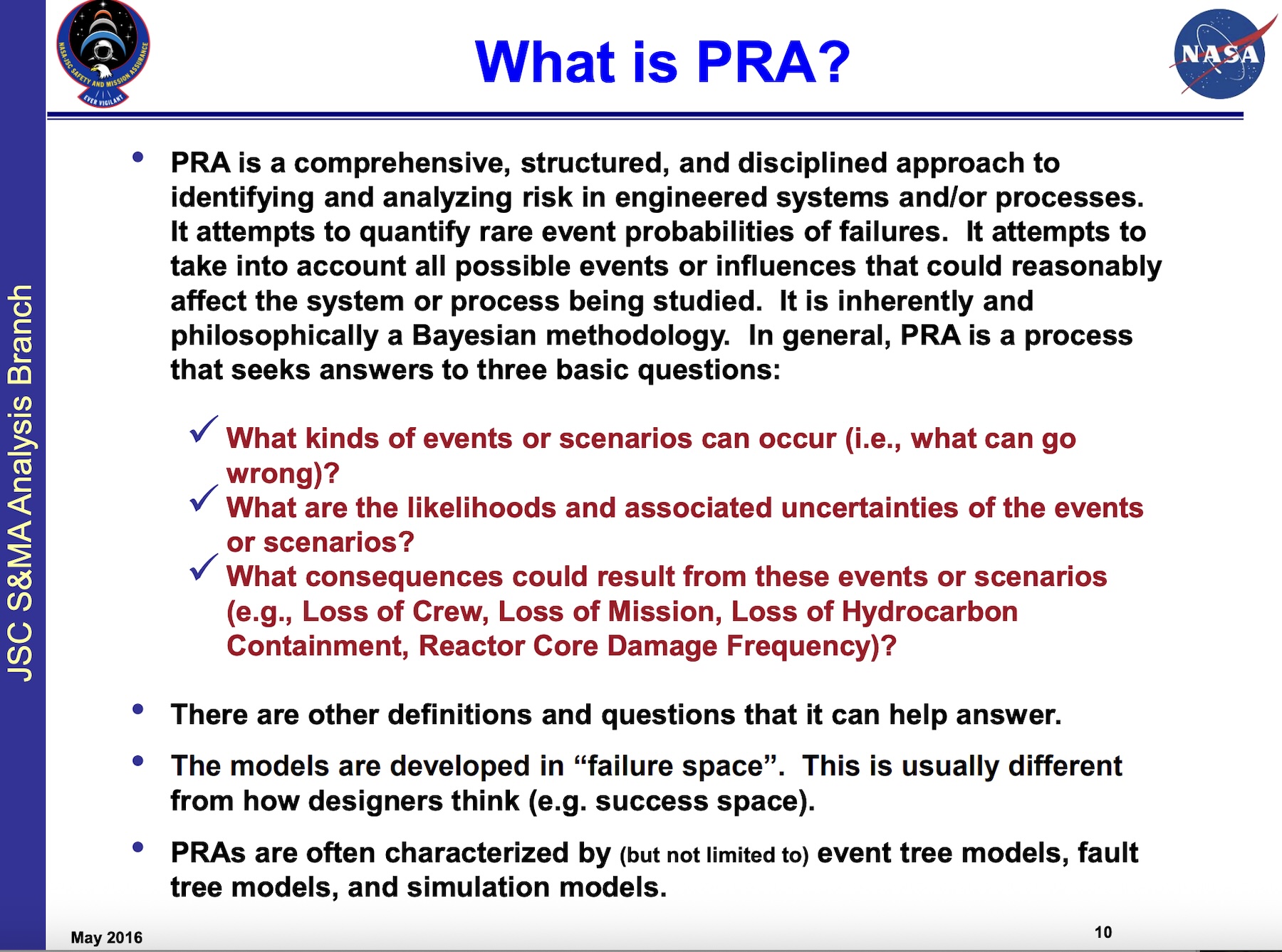 This chart from NASA’s Office of Safety and Mission Assurance describes the agency’s process for conducting probabilistic risk assessments.