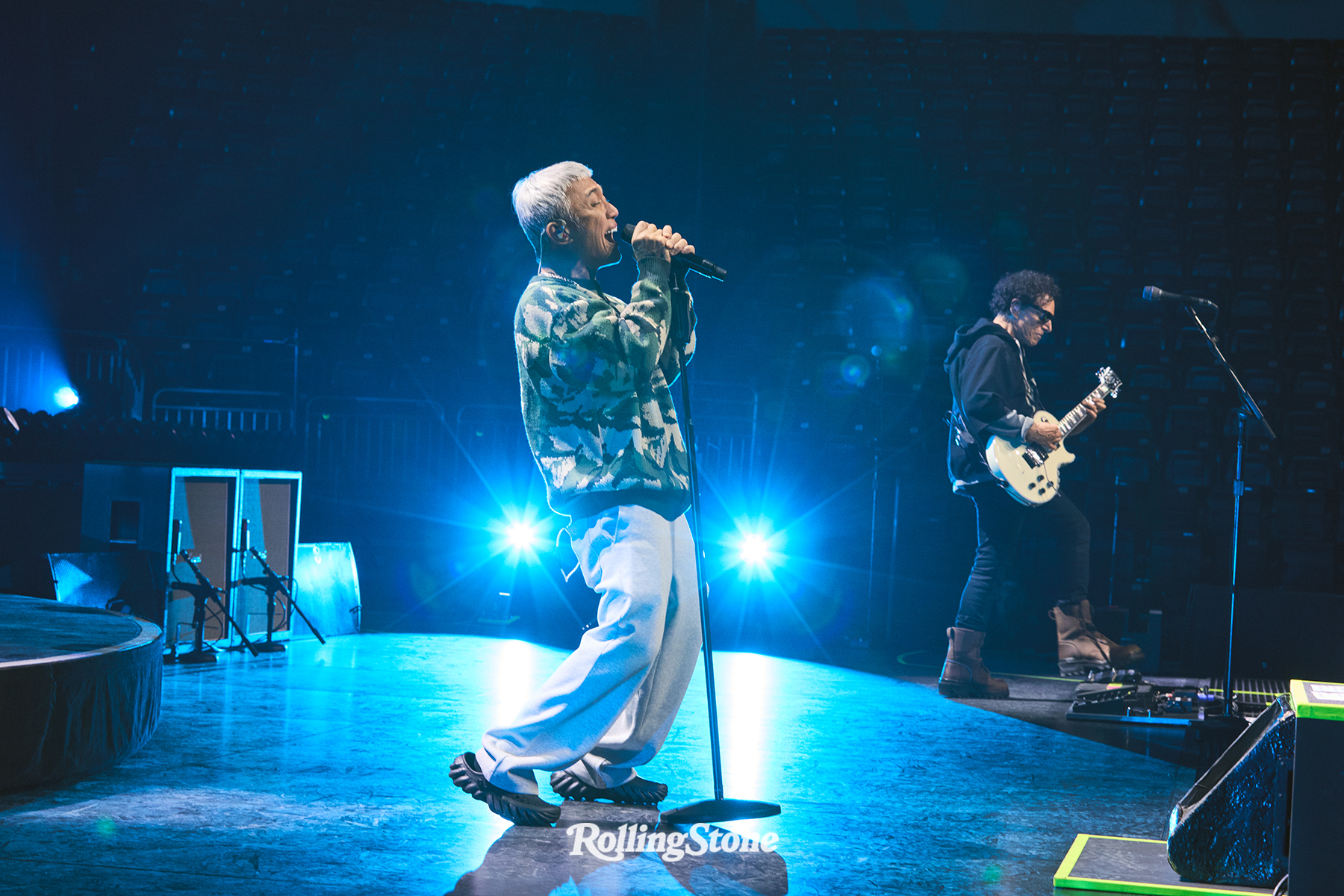 Pineda wasn’t around for rehearsals, and he just learned the current plan is two hourlong sets, with an intermission in between. He’s not happy about it. A break, he says, “puts my voice in trouble…. It’s like a car where you go full speed, and then have to stop, and then go full speed. I also worry the fans will mellow…. It kills the momentum of the show.”