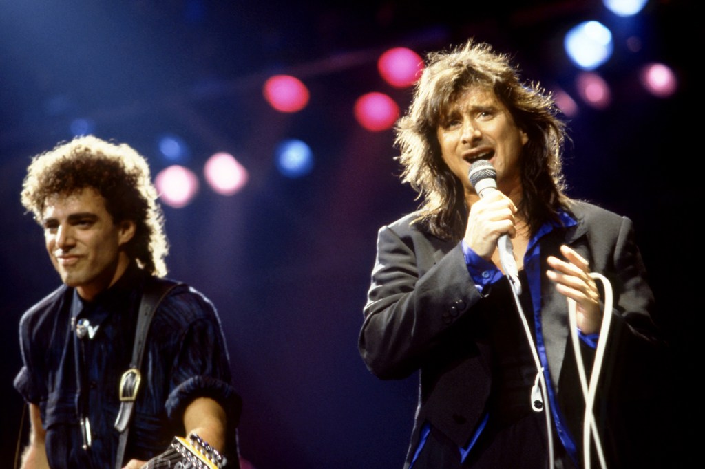 Schon (left) and Perry onstage during the band’s 1986 ‘Raised on Radio’ tour.