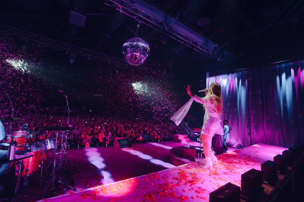 On tour, Duff brings fans onstage to join her in the “With Love” dance. They’re usually decked out in 2000s fashion, from butterfly clips to space buns, or her signature outfits from The Lizzie McGuire Movie. She’s considering including celebrity guests as the tour continues, similar to Carpenter’s “Juno” arrests or Role Model’s many Sallys. “It’s also a great way to take a little break,” she jokes. “Mama needs a break.”