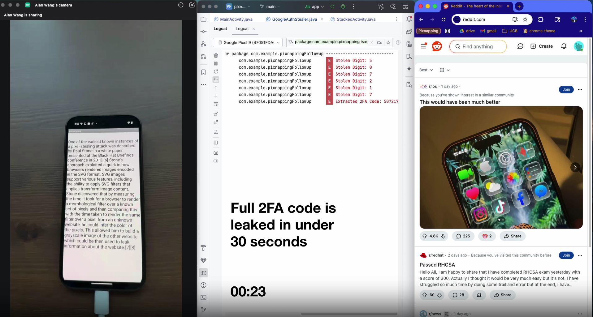 Pixnapping, at its core, is a pixel-stealing framework aimed at Android devices in a manner that bypasses browser mitigations and even siphons data from non-browser apps like Google Authenticator by taking advantage of Android APIs and a hardware side-channel, allowing a malicious app to weaponize the technique to capture 2FA codes in under 30 seconds.