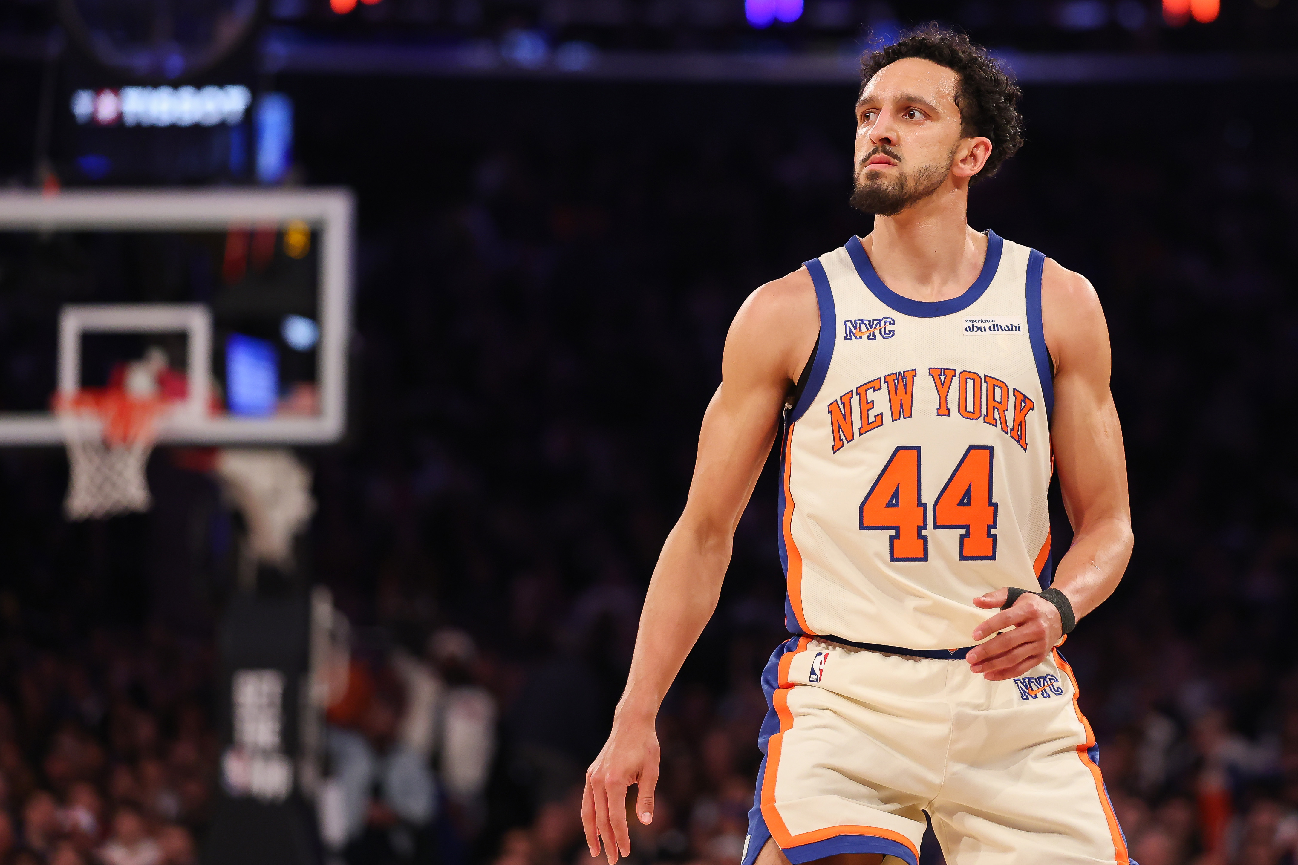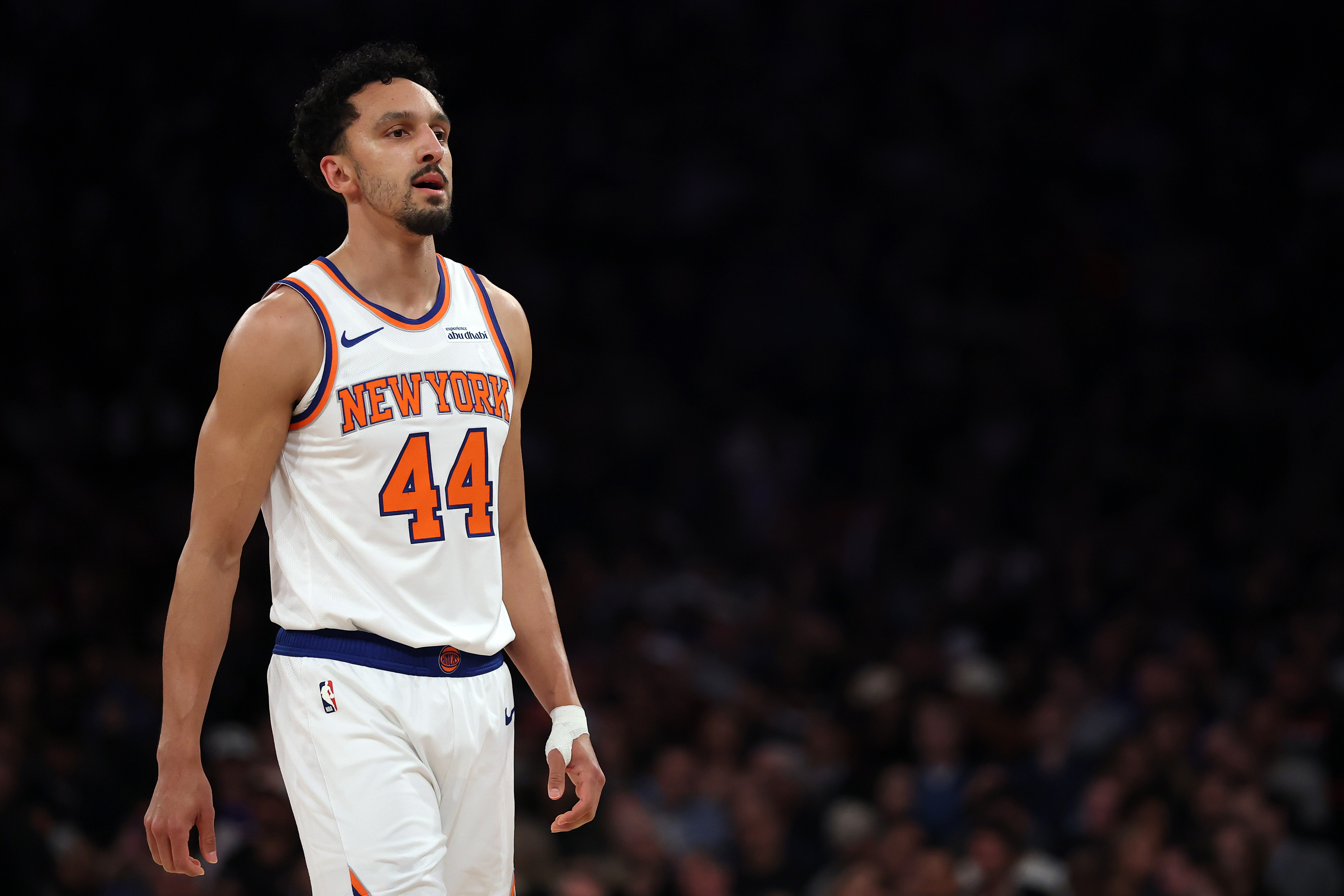 GettyNEW YORK, NEW YORK – FEBRUARY 01: Landry Shamet #44 of the New York Knicks looks on during the game against the Los Angeles Lakers at Madison Square Garden on February 01, 2026 in New York City. (Photo by Ishika Samant/Getty Images)