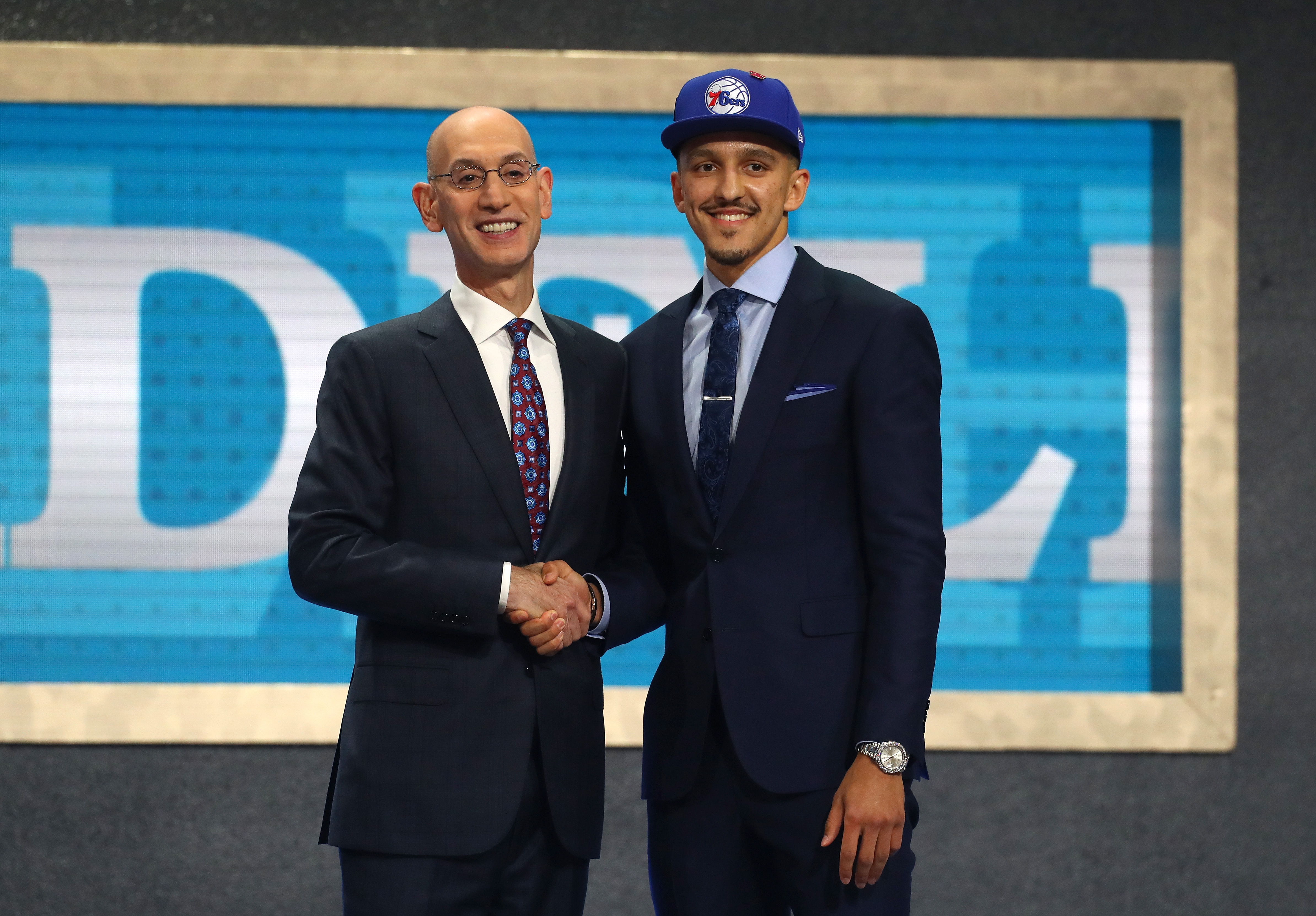 GettyNEW YORK, NY – JUNE 21: Landry Shamet poses with NBA Commissioner Adam Silver after being drafted 26th overall by the Philadelphia 76ers during the 2018 NBA Draft at the Barclays Center on June 21, 2018 in the Brooklyn borough of New York City. (Photo by Mike Stobe/Getty Images)