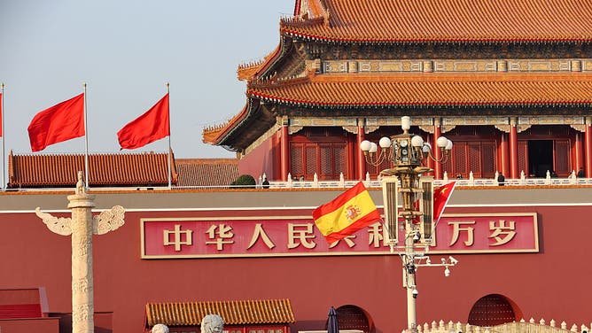 The national flags of China and Spain flutter at Tian’anmen Square on November 11, 2025 in Beijing, China. (Photo by Wang Xin/VCG via Getty Images)