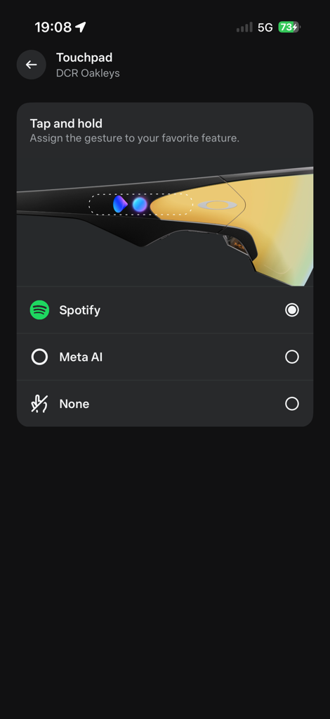Then, on the side of the glasses there’s a touchpad of sorts.You can tap it once to start paying music, and then swipe forward/back to increase/decrease volume.