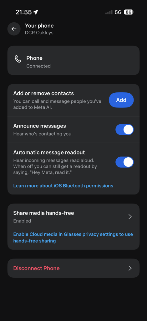 Lastly on audio bits, you can take phone calls from the glasses, in the same way you would any other headphones. This is true of both the phone’s native calling capabilities, as well as Meta apps including WhatsApp, Facebook Messenger, and Instagram. Audio quality was pretty good for both sides of the equation, audio quality for me to listen to, and the other person receiving the audio call listening to me. No issues there.
