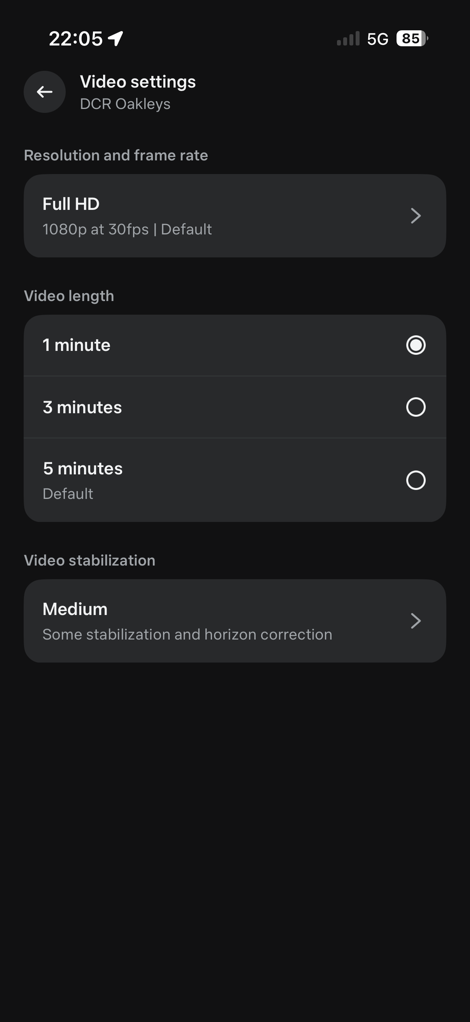 Alternatively, you can just tap the bigger of the two buttons on the right side. Pressing it once takes a photo, and then long-holding it starts video recording. By default, it’ll record 1080p/30FPS video for 60 seconds. However, you can change this to 3K video, up to 5 minutes. The setting allows you to choose 1/3/5 minutes. You can always stop the video at any time too. There are also stabilization options too for the 1080p option.