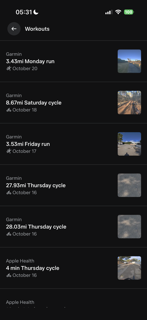 I just want to super quickly note that in addition to Garmin & Strava integration, there’s also roughly the same level of integration as Strava, but for data coming from Apple Health. This can include Apple Watch workouts, as well as other watches/devices that stick data into Apple Health.