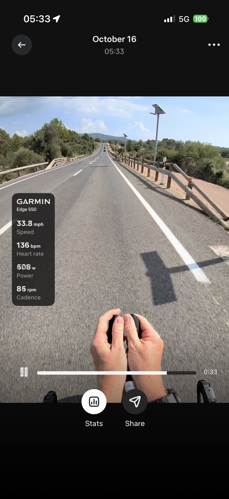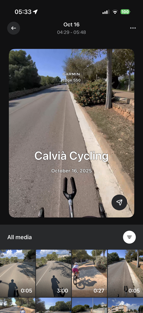 But finally, we get to my favorite part: The post-workout stats on videos (or photos). First, it’ll automatically group all your photos/videos from that ride together, since it’s imported in the completed workout file from Garmin, it knows the exact start/end times of the activity.