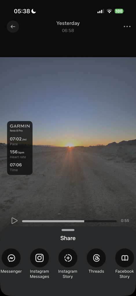 Sure, it doesn’t quite have all the crazy stats the good ol’ VIRB Edit app used to have (like Garmin Cycling Dynamics or such), but this is a good start. I’d encourage Meta/Garmin to lean-into this more. Have an expando option at the bottom of the list that says “Advanced” or “Geek Mode”, and then just dump a boatload of stats in there. Like, everything and anything. Become the defacto way people show all the crazy Garmin workout stats that it collects. As they say, if you’ve got it, flaunt it. Seriously, flaunt it.
