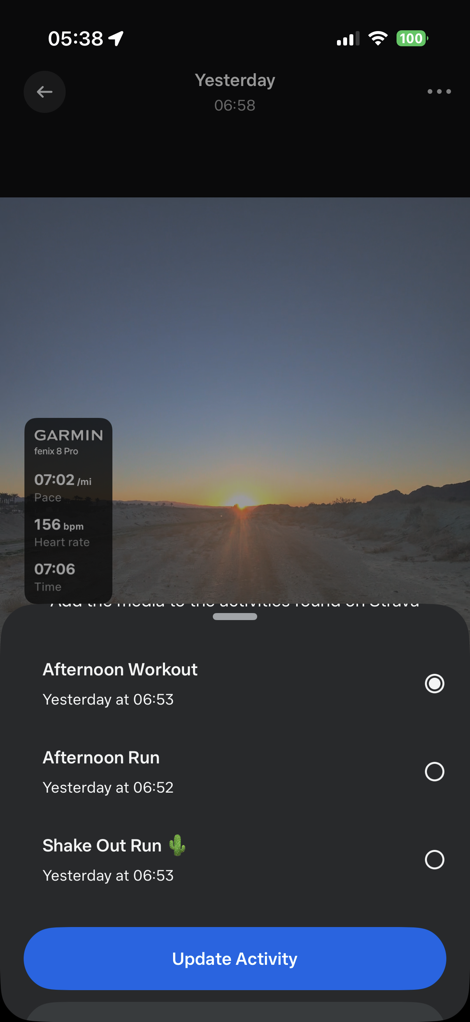 Next, go out and do an activity, and record it on whatever device or app you want. Meaning, record it on the Strava app, or your Suunto, or Apple Watch, or anything you want, as long as the data ends up in Strava. Of course, also critically, take some photos/video along the way with the Meta AI glasses.