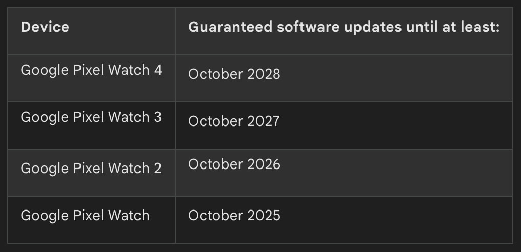 Over the course of its life, the Pixel Watch got Wear OS 3.5 (Android 11), Wear OS 4 (Android 13), Wear OS 5 (Android 14), Wear OS 5.1 (Android 15).
