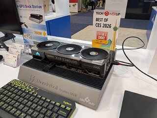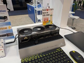 Your eGPU needn’t be an enclosure, it can be a dock. Your graphics card needn’t be encased, but breathe freely. That is the design philosophy behind the Good Way Thunderbolt graphics dock. This dock takes advantage of Thunderbolt 5, and packs a 700 W ATX 3.1 power supply that can feed your graphics card power via a modern 12V-2×6 connector. That’s not all, it can expand your notebook’s connectivity with a further Thunderbolt 5 link downstream for daisy-chaining your DAS, some additional USB-C ports, and an SD Express card reader. The best case for graphics cards is no case at all, and Good Way figured this out, for which it wins our Best of CES 2026 award.