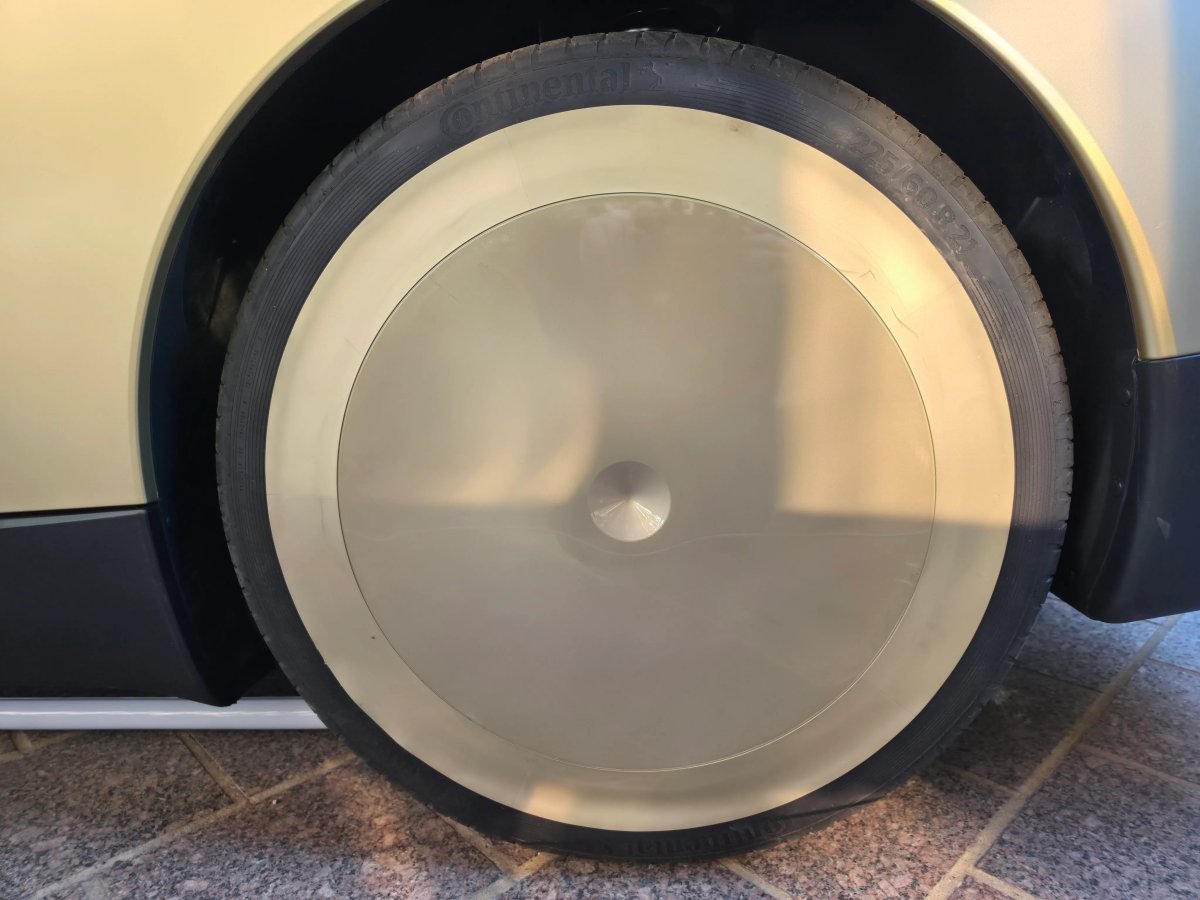 Beyond the upgraded camera suite and interior, production-ready Cybercab units are showing off several hardware refinements that lean into its “premium robotaxi” identity. Most notably, the vehicle appears to use a staggered wheel setup featuring larger and wider tires in the rear to handle the torque of its electric drivetrain. The front is equipped with 215/60R/18 tires, while the rear steps up to a beefier 225/60R/21 setup, all wrapped in Continental aContact rubber with sleek, full-disc aerodynamic hubcaps.