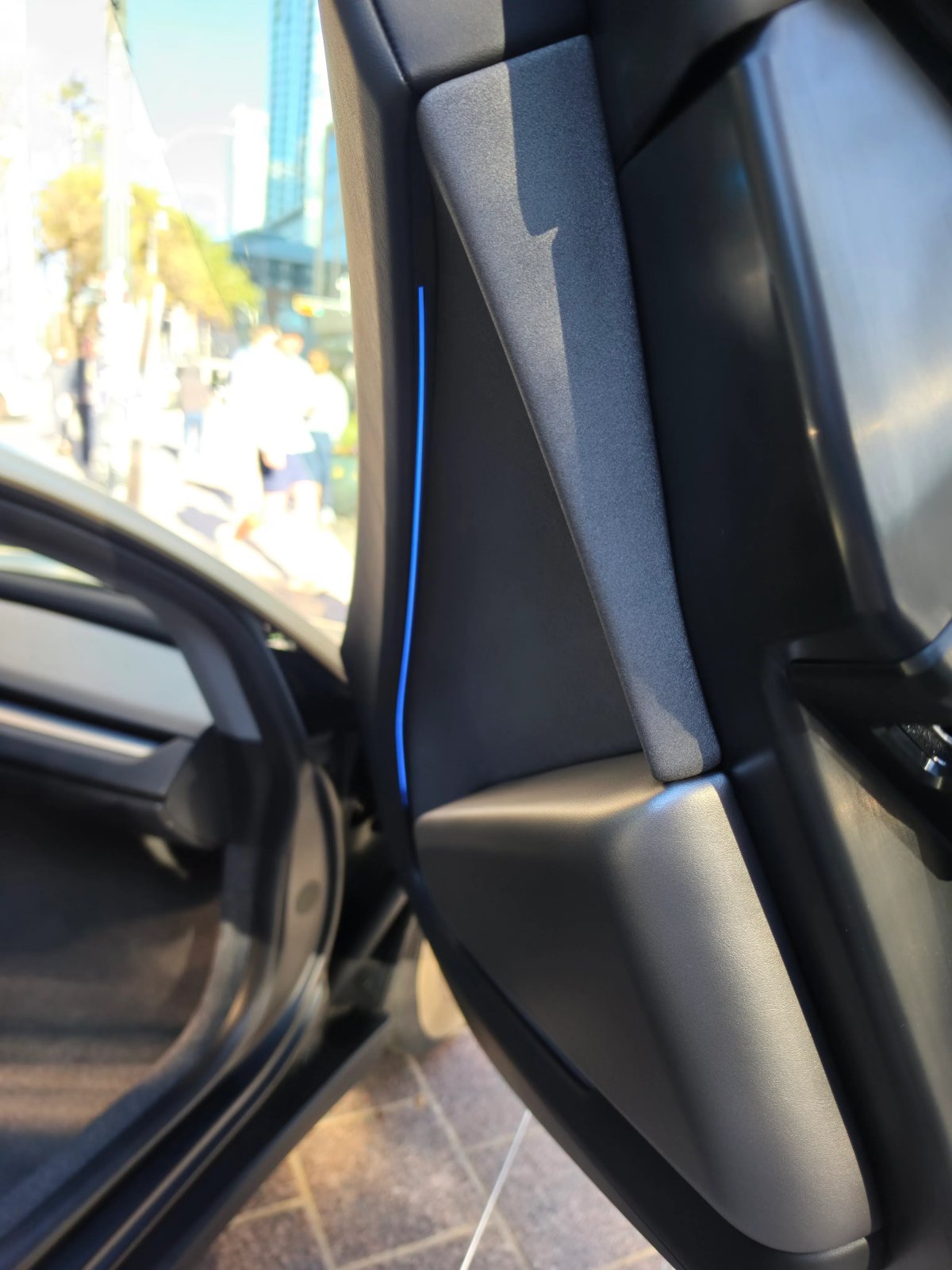 Inside, Tesla has added a touch of luxury that departs from its usual utilitarian minimalism: thin strips of ambient lighting, spotted in the doorframes. This light strip, which emits a soft blue glow in the latest sightings, provides both a futuristic aesthetic and functional illumination for passengers entering and exiting the vehicle at night — a small but critical detail for a ride-hailing service designed to operate 24/7.