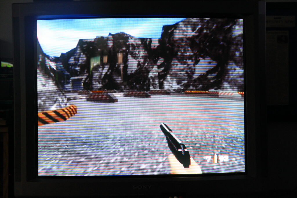 The beginning of Goldeneye as seen through Analogue’s CRT filter (photo of the HDTV screen).