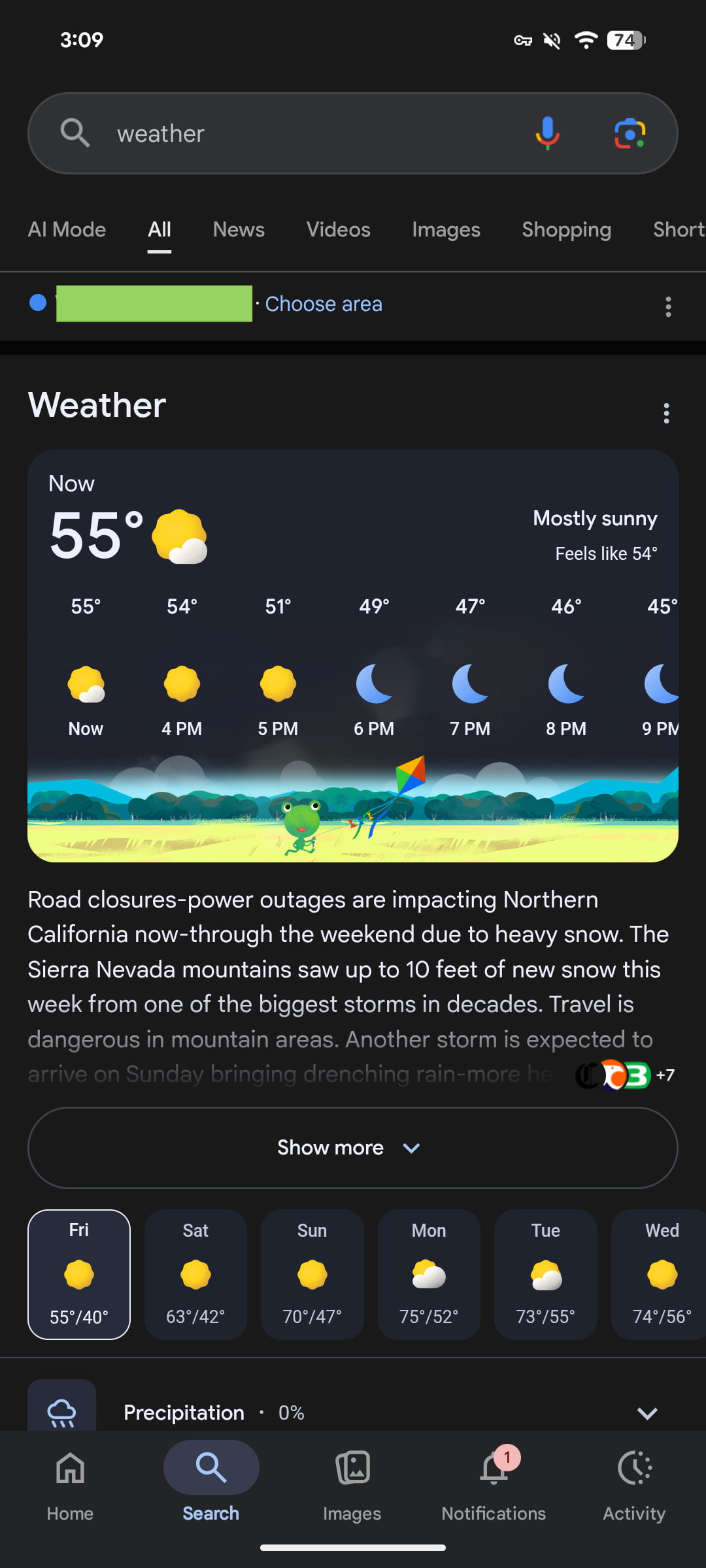 This page was recently redesigned with the Froggy card pulling double duty for current conditions and hourly forecast. This is joined by a 10-day forecast carousel that you can tap on, as well as drop-downs for Precipitation, Wind, Humidity, and Air quality (which is new).