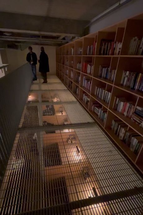 A catwalk gives a view into office carrels, and the central courtyard creates a kind of panopticon. Adriane Quinlan.