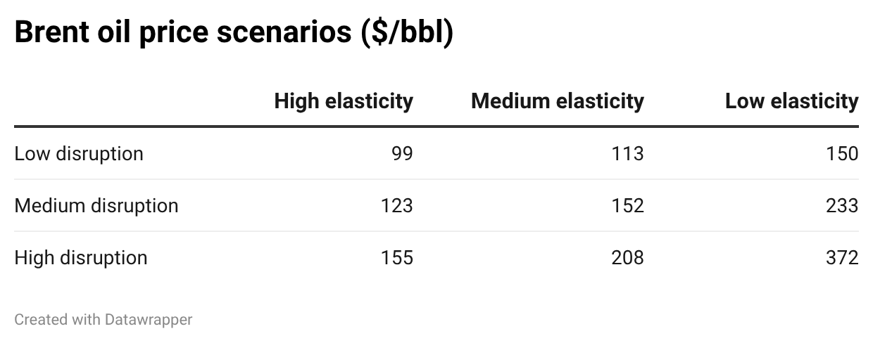 There are two big sources of uncertainty. The first is that we don’t know how much oil will manage to escape the Gulf. Right now oil supply is drastically curtailed, but not by the full 20 million barrels of oil a day that used to flow through the Strait of Hormuz. The Saudis have a pipeline that lets them ship some of their oil to the Red Sea; Oman has a pipeline that takes some oil around the Strait. And Iran has been letting millions of barrels of its own oil pass. Whether all these “leakages” will continue depends on the course of the war.