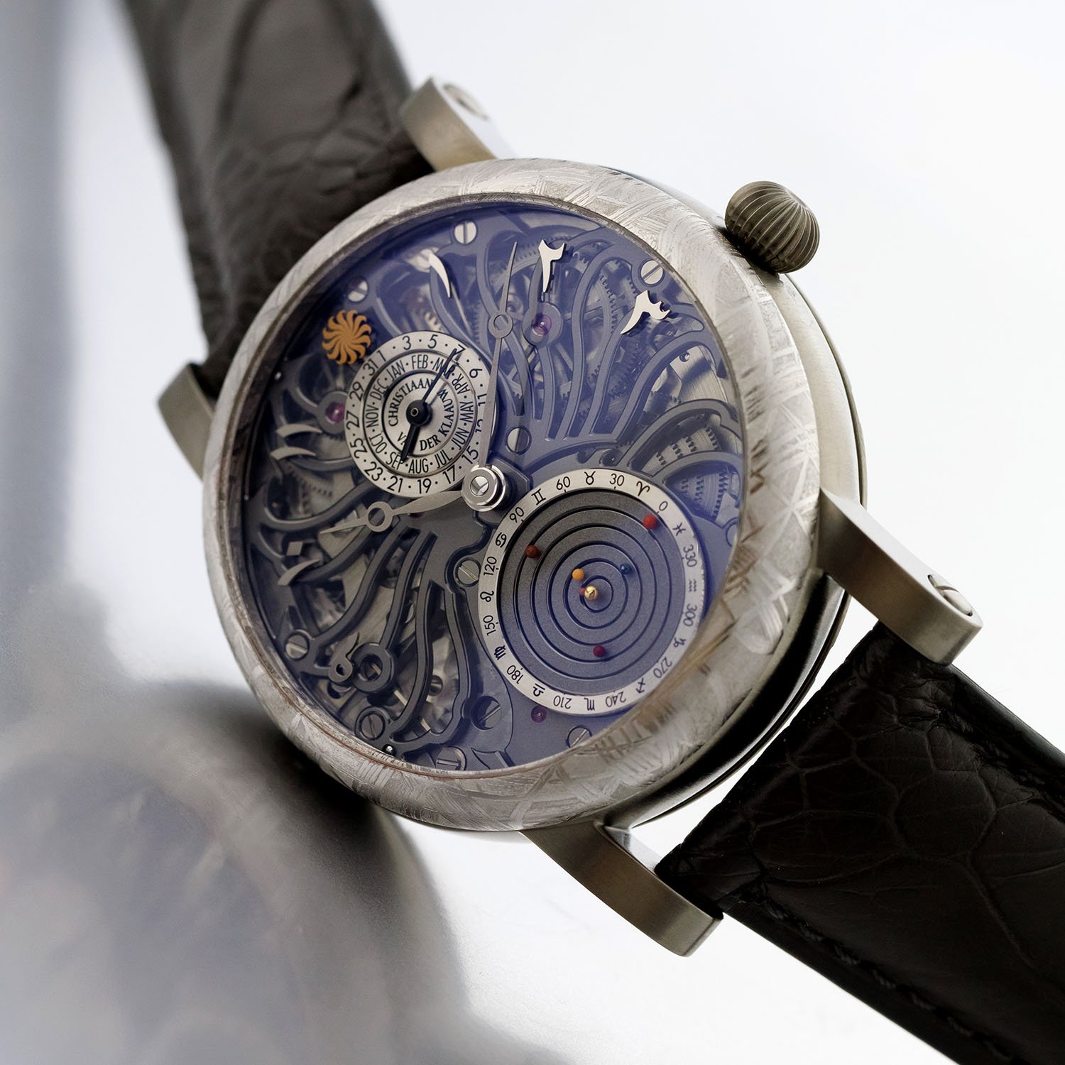 Any watch from Christiaan van der Klaauw that carries a planetarium is, by definition, special. Since the mid-1990s, this rare and spectacular complication has been the brand’s signature feature, conceived and calculated by Mister van der Klaauw himself. Recently, the brand, now under the guidance of Pim Koeslag, presented the fantastic Grand Planetarium Eccentric, the first of its kind to display all 8 planets of our solar system. But let’s not forget the classic Planetarium, the world’s smallest mechanical planetarium. This watch has been rendered even more special recently with the creation of a unique piece with a fully skeletonised dial, the one-off Christiaan van der Klaauw Planetarium Julie.