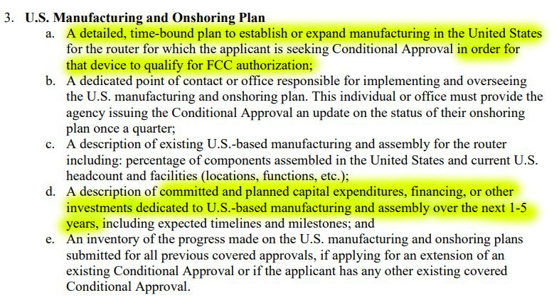 And tellingly, the FCC is asking for a plan to manufacture those routers in the US instead. The plan must include how much money the company will commit to US manufacturing over the next five years.