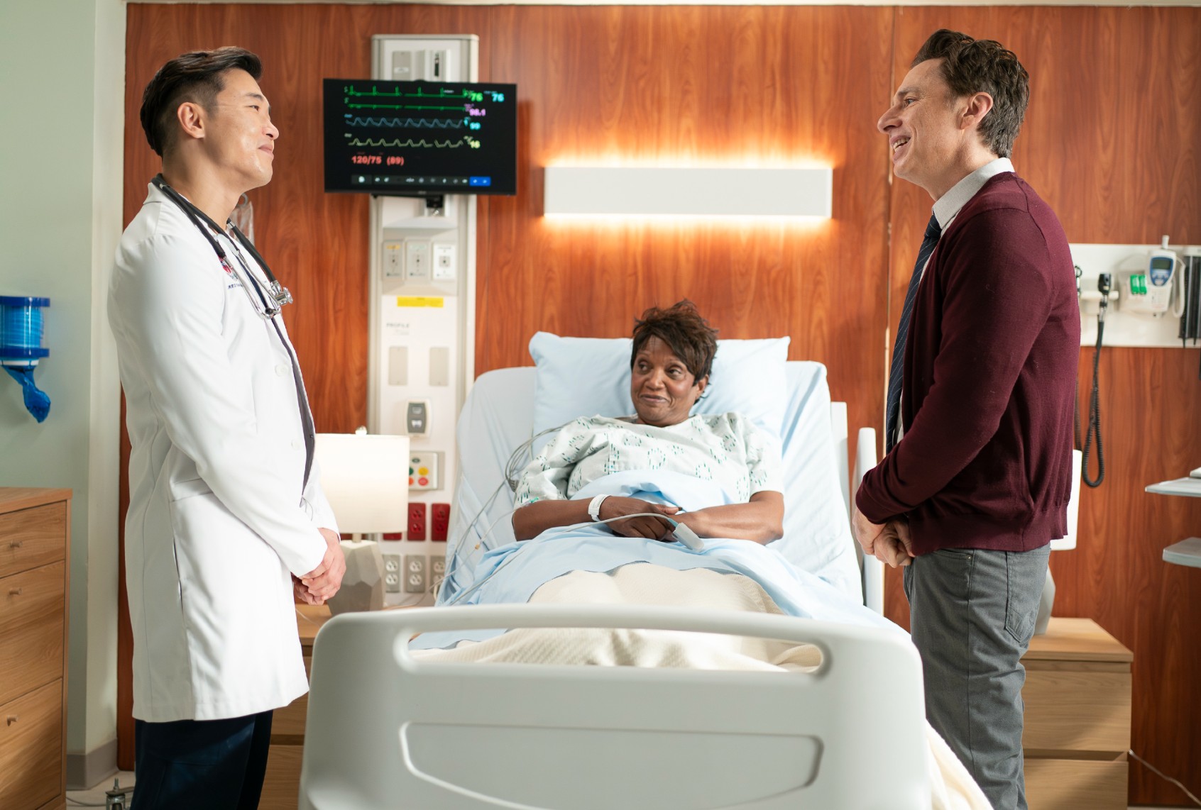 (Disney/Darko Sikman) Joel Kim Booster, Anna Maria Horsford and Zach Braff in “Scrubs”