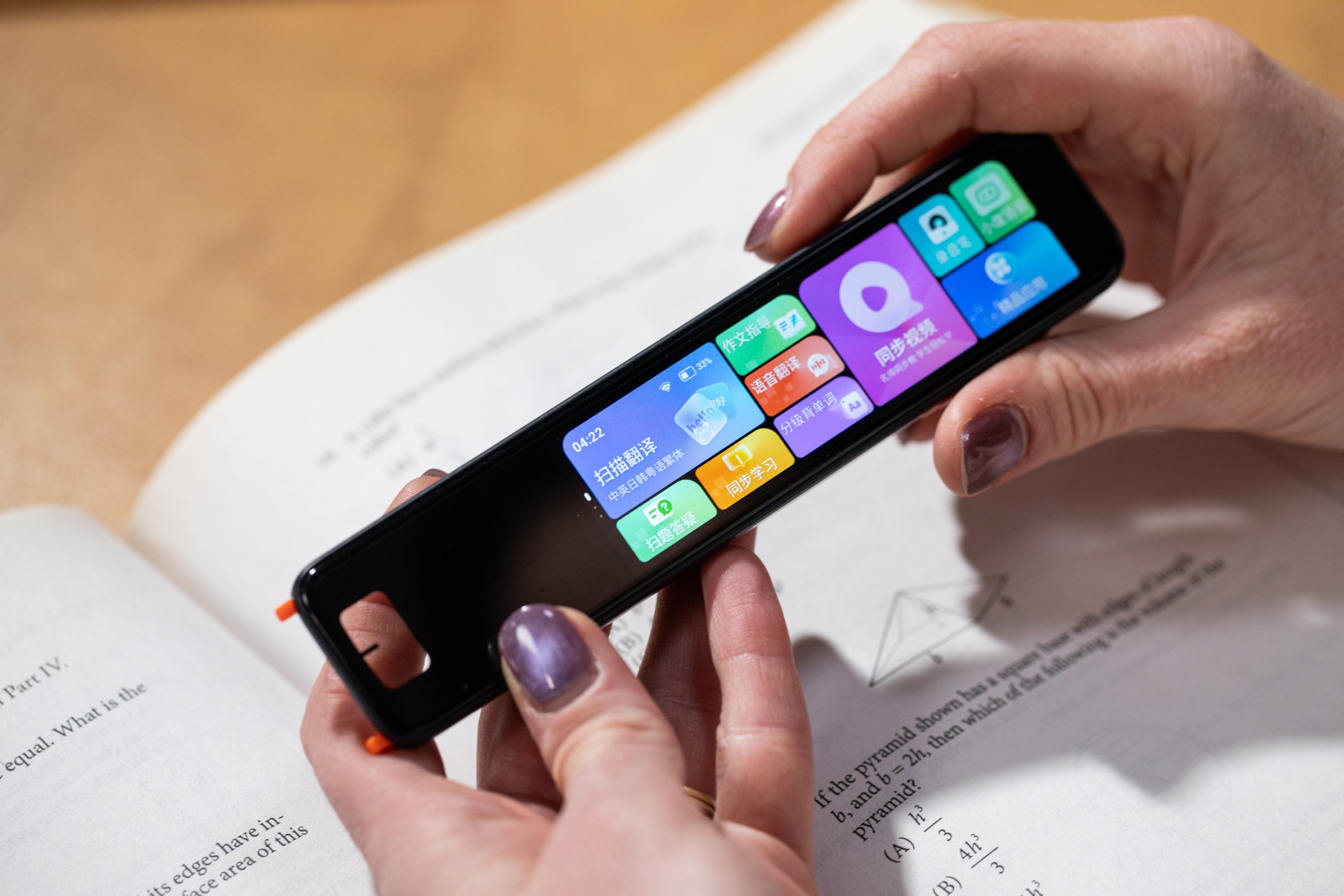 At first, I wondered if I hadn’t selected the correct setting. The menu of the pen we bought was in Chinese, which made it tricky for me to navigate the homescreen. I fed pictures of the screen into language translation apps to figure out what each button did. One was for language translation, another for essay help, and still more for vocabulary help or voice recording.