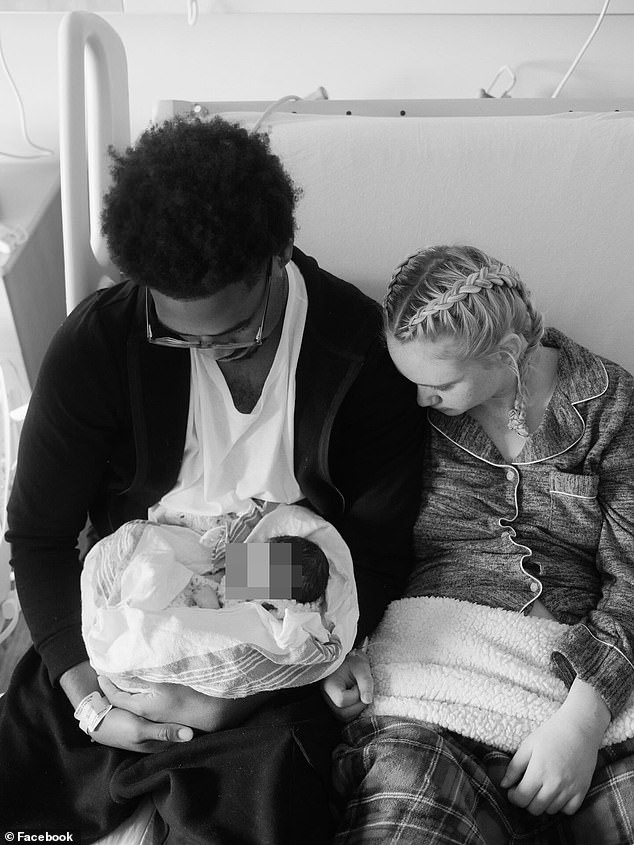 She also shared a series of black and white photos – with one image showing Younger and her husband gazing down and holding who appeared to be their late daughter.
