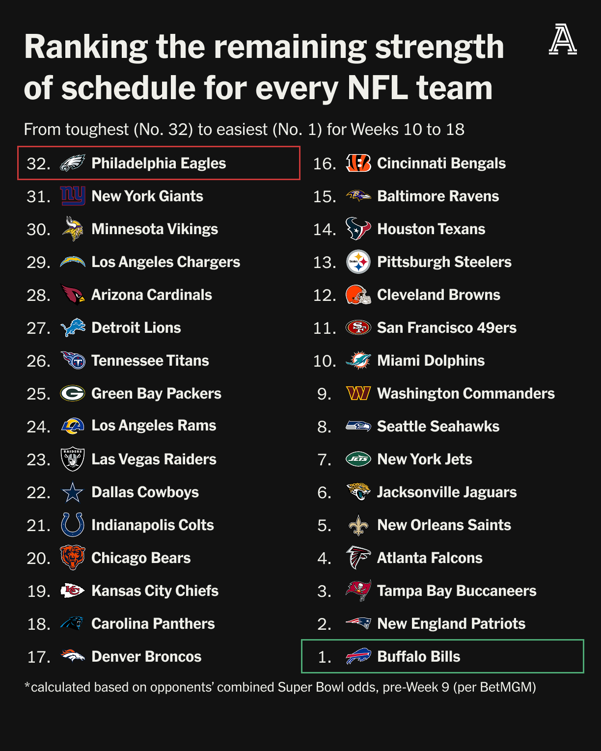 Meanwhile, the Patriots could lose their next four games and still have 48 percent odds to make the playoffs. Assuming that’s not the plan, they’ll be tested by the Buccaneers next week, and they might need to win out to remain ahead of those Bills — the only team with an easier remaining schedule — to claim the AFC East throne.