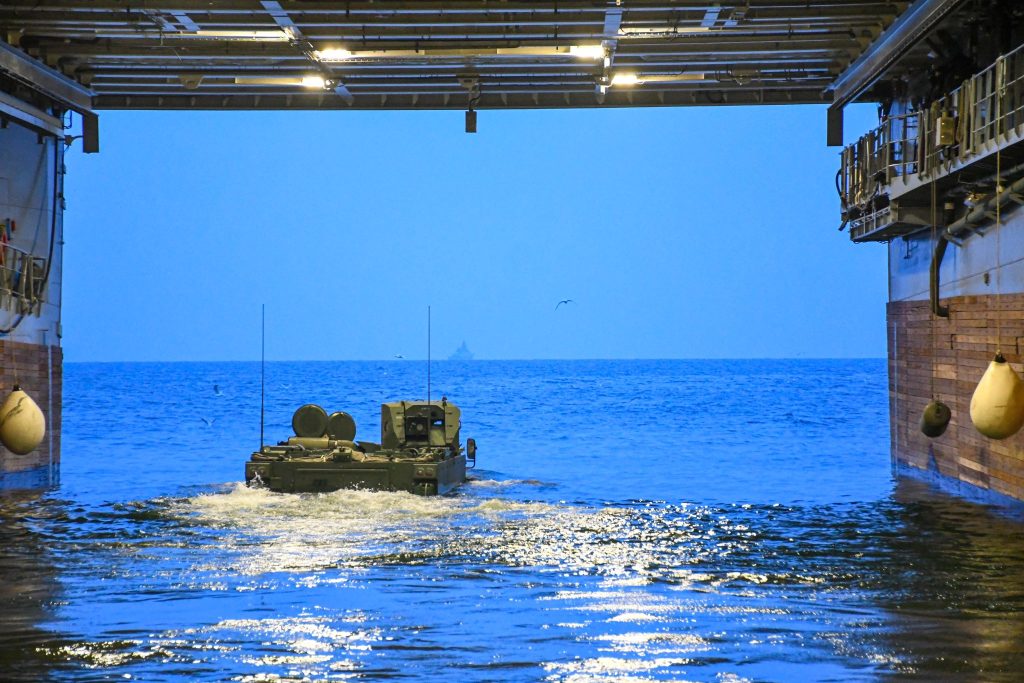 The embarked force includes an amphibious marine infantry battalion, “ZAHA” amphibious armored assault vehicles, naval special warfare elements (SAT and SAS teams), helicopters, and three “Bayraktar TB3” unmanned combat aerial vehicles.