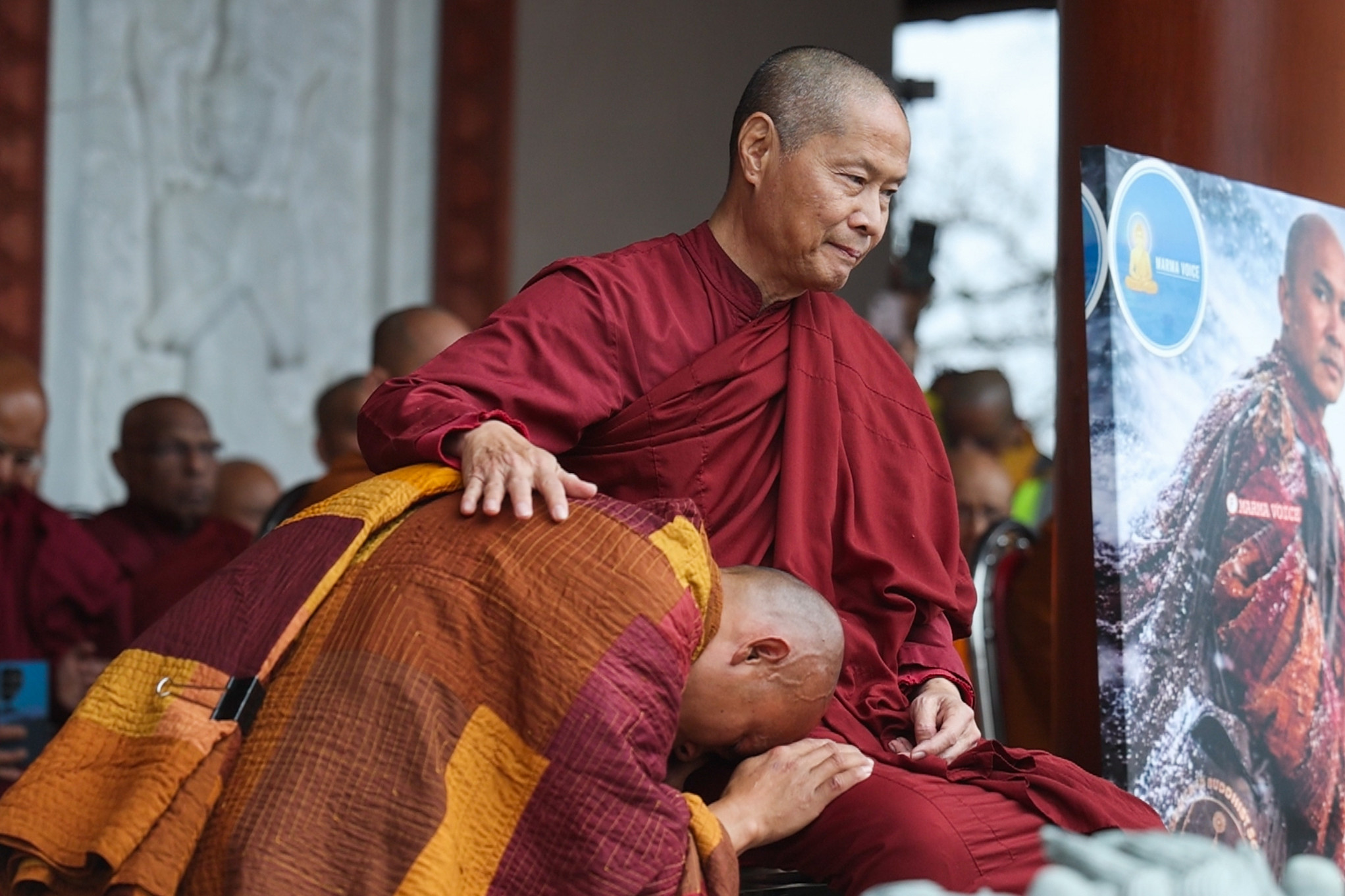 Arriving at the temple just before the rain began, Pannakara bowed in reverence at the feet of his teacher, the Venerable Ratanaguna. The abbot of the temple, Ratanaguna did not walk on the journey but helped guide the monks along the way with his presence, according to the group’s Facebook page.