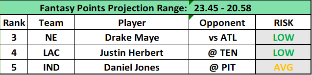 | 4 | LAC | Justin Herbert | @ TEN | LOW |