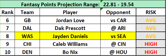 | 8 | WAS | Jayden Daniels | vs SEA | AVG |
