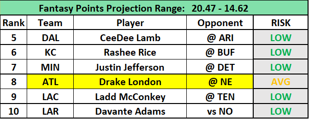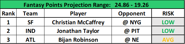 | 3 | ATL | Bijan Robinson | @ NE | AVG |